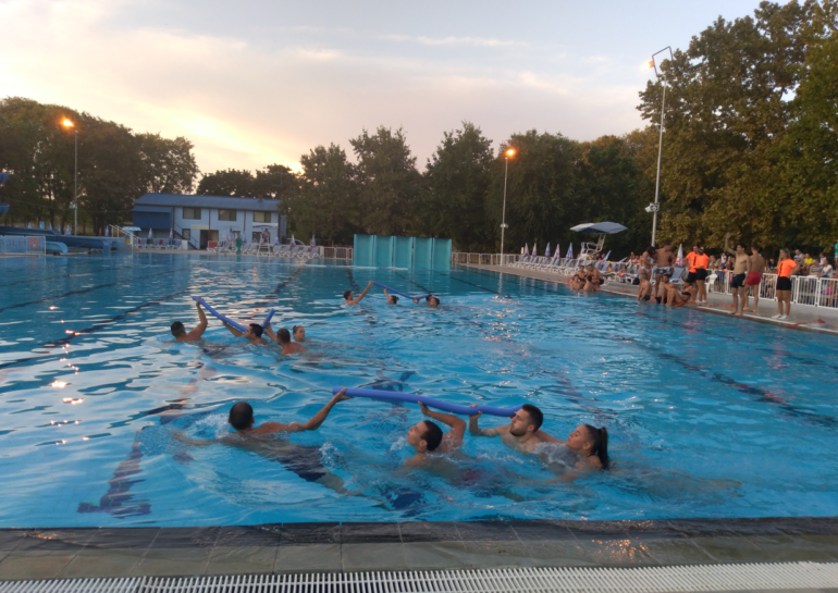 Na gradskom bazenu u Inđiji u predvečerje prošlog utorka održane su „Letnje igre na vodi“ u kojima je učestvovalo šest ekipa, dok je brojna publika u prijatnom ambijentu uživala prateći takmičarske dogodovštine na vodi. Igre je otvorio direktor Ustanove „Sportski centar“ koja gazduje bazenom, Ilija Trbović.