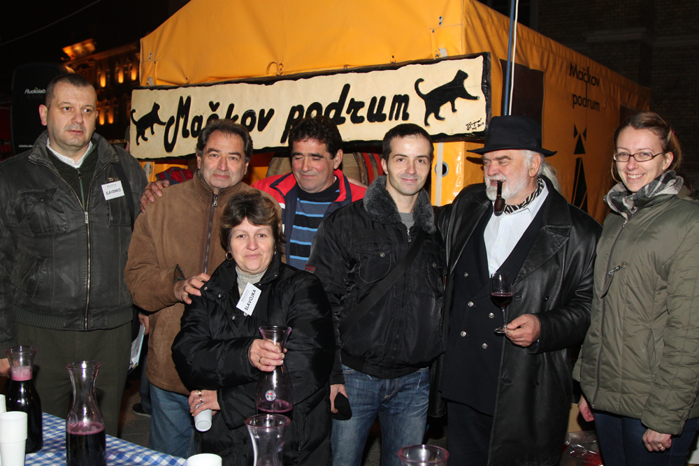 Tre­ći če­tvr­tak u no­vem­bru je dan ka­da se sa nest­plje­njem i uz­bu­đe­njem do­če­ku­je i otva­ra mla­do vi­no, od Fran­cu­ske do Ja­pa­na, a po­zna­ta iri­ška vi­na­ri­ja „Mač­kov po­drum“ već pe­tu go­di­nu za re­dom or­ga­ni­zu­je Dan mla­dog por­tu­gi­ze­ra-sva­tov­ca u že­lji da do­ča­ra deo te pla­ne­tar­ne eufo­ri­je svi­ma oni­ma ko­ji su po­što­va­o­ci bo­žan­ske ka­plji­ce. Ta­ko su Iri­ža­ni po­te­gli ovog 17. no­vem­bra u No­vi Sad i Ba­čva­ni­ma pred­sta­vi­li svo­ja sre­mač­ka vi­na uz pro­gram ne­za­o­bi­la­znih tam­bu­ra­ša, pu­da­re, glum­ce i sve lju­de ve­se­log du­ha i lju­bi­te­lja vi­na. Za­jed­nič­ki je otvo­re­no baš ov­de pr­vo bu­re mla­dog vi­na. Ori­la se pe­sma Tr­gom slo­bo­de i Zmaj Jo­vi­nom uli­com, to­čio sva­to­vac, ka­zi­va­li sti­ho­vi naj­bo­ljih pe­sa­ma o vi­nu, za­pra­vo onih ko­je su iz­ba­ra­ne na ne­dav­nom kon­kur­su ko­ji je or­ga­ni­zo­va­la ova vi­na­ri­ja i iri­ška Srp­ska či­ta­o­ni­ca. Na kon­kurs je pri­sti­glo čak 65 pe­sa­ma od 35 auto­ra, a pre­ma od­lu­ci ži­ri­ja naj­bo­lja pe­sma je „Vi­no je po­lju­bac po­sto­ja­nja“, auto­ra Ve­selj­ke Ni­ko­lić iz Ru­me, dru­go me­sto je pri­pa­lo „Pe­smi o vi­nu“ Gor­da­ne Mir­če­tin iz Man­đe­lo­sa, a tre­će pe­smi „Vi­no“ auto­ra iz Ću­pri­je Bo­ri­sa­va Bla­go­je­vi­ća. Ove na­gra­đe­ne sti­ho­ve ka­zi­vao je vo­di­telj Bo­ško Ne­go­va­no­vić, pu­dar­ske po­ša­li­ce i aneg­do­te go­vo­rio je Ba­ne Jo­vi­čić iz Ru­me, na­stu­pi­la je fol­klor­na gru­pa iz Vrd­ni­ka, a at­mos­fe­ru su pod­gre­va­li i „Ve­se­li tam­bu­ra­ši“ no­vo­sad­ski.
