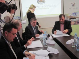 Pećinci – Danas je u Pećincima potpisan Memorandum o razumevanju između opštine Pećinci i rusko-španskog konzorcijuma kompanija fotonaponske industrije kojim se definišu uslovi za izgradnju solarne elektrane na teritoriji ove opštine. Dokument su potpisali predsednik pećinačke opštine Sava Čojčić, zamenik predsednika direktora Asocijacije ruske fotonaponske industrije (RPIA) Jevgenij Zagorodni, predstavnik RPIA u Srbiji Andrej Dimitrijević, generalni direktor kompanije Exiton LL.C Aleksandro Karaulov i zamenik regionalnog direktora za Istočnu Evropu kompanije Elecnor S.A. Loreto Tehuka. RPIA planira da investira od 75 do 90 miliona evra za razvoj projekta izgradnj