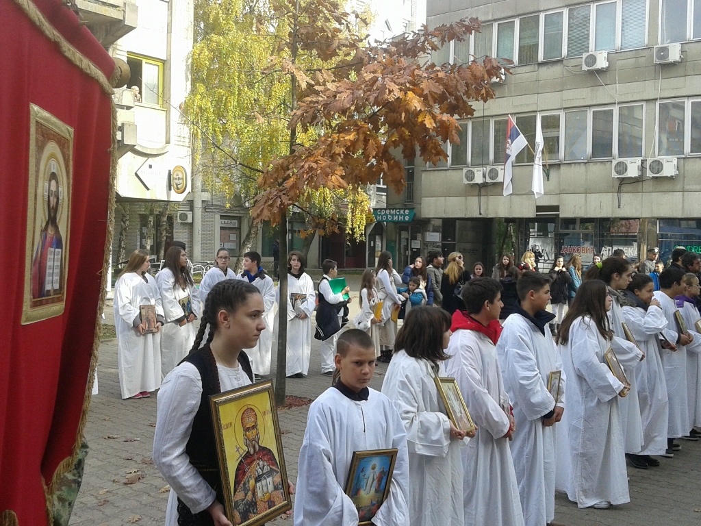 Sremska Mitrovica – Povodom Mitrovdana, gradske slave, u Sabornom hramu svetog Dimitrija u centru Sremske Mitrovice, svetu arhijerejsku liturgiju služio je episkop sremski Vasilije, a nakon svečanog obreda sečenja slavskog kolača u prisustvu gradskih čelnika, litija je prošla ulicama grada do bazilike Svetog Dimitrija.