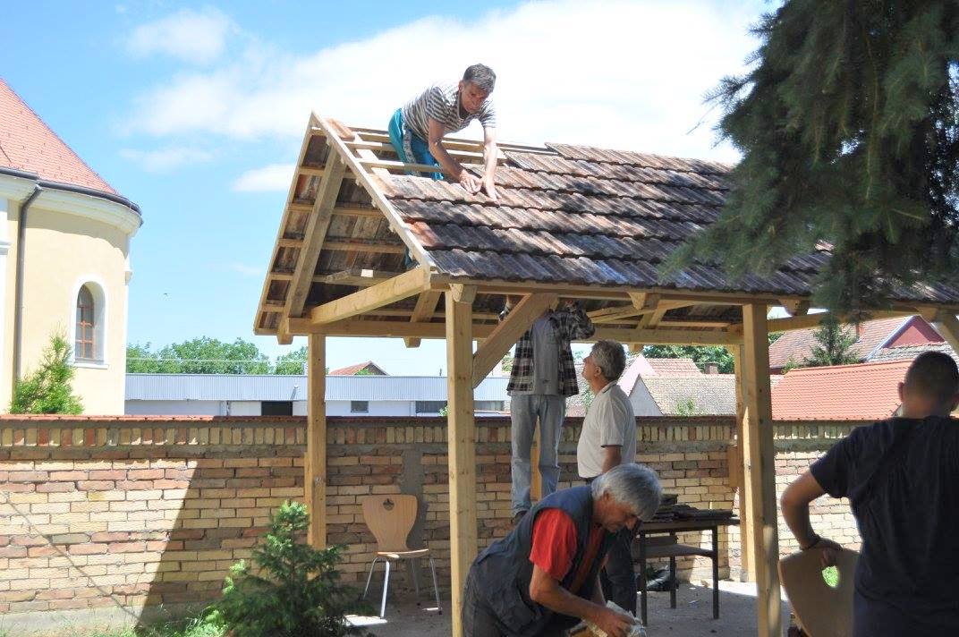 – Kroz priču smo došli na ideju da nešto za decu uradimo, a saglasnost i pomoć nam je stigla i od direktora škole Zorana Đurića, govori Nedimović. Škola je obezbedila novac za nabavku cementa i šljunka i najpre smo uradili ploču. Zatim nam je majstor iz Šašinaca, Stanoje Filipović, dao drvene stubove, škola je dokupila vence i letve i mi smo prionuli na rad. Moj deo posla se najpre odnosio na betoniranje, a posle sam ukrajao rogove, venčanice. Od naše područne škole u Jarku smo dobili polovni crep koji je preostao nakon što je tamošnja škola postavila novi. Objekat je pokriven, ostalo je da postavimo ćeramide, dok ćemo na proleće urediti prostor za sedenje, postaviti jedan veliki sto i napraviti lepu ogradu.
