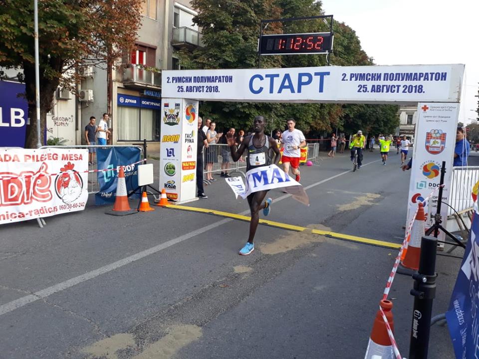 Ruma- Kenijac Ajzak Kimutai Ngeno pobednik je Drugog rumskog polumaratona koji je održan 25.avgusta. U ženskoj konkurenciji najbrža je bila Teodora Simović, članica AK „Novi Pazar“. Polumaraton je podrazumevao trku dugu 21,1 kilometar, štafetnu trku 3 puta po 7 kilometara i DDOR Trku zadovoljstva dužine 7 kilometara i Neon bambini puzeću trku beba. Organizator je Sportski savez Opštine Ruma pod pokroviteljstvom Opštine Ruma. Drugi rumski polumaraton opravdao je očekivanja organizatora i trkača, kao i građani koji su takmičare bodrili tokom čitave trke. Pobednik Kenijac Ajzak Kimutai Ngeno