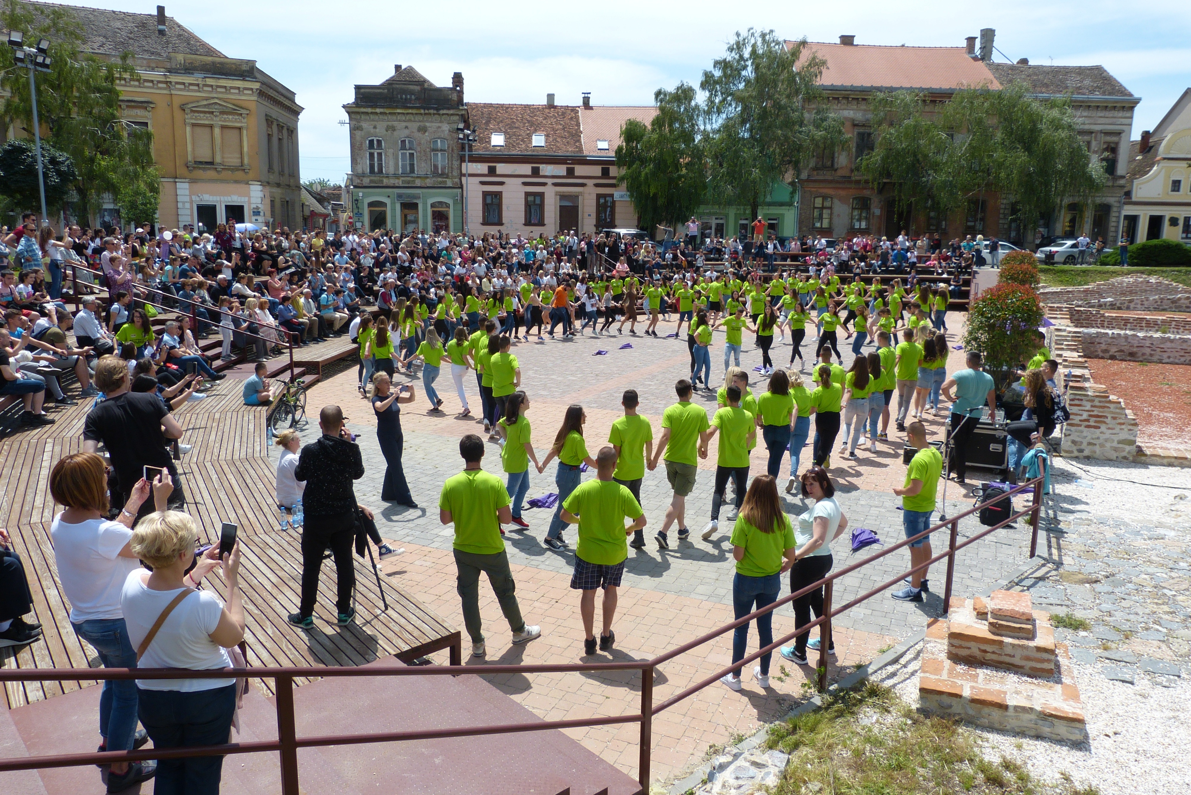 P1000037Sremska Mitrovica – Predstavnici maturanata svih mitrovačkih srednjih škola , iako u manjem broju nego inače, učestvovali su na „Maturantskom plesu“ koji je organizovala Kancelarija za mlade na Žitnom trgu. Maturante je u ime grada pozdravio zamenik načelnika GU za obrazovanje Zoran Miščević. Kako su kazali maturanti za njih je 10. jubilarni ples baš lepa završnica srednjoškolskog školovanja kojoj se nisu nadali. Ipak uspeli su da za 15 dana vežbanja uspešno odigraju predvidjeni plesni program.Prepuna tribina Žitnog trga dokaz je da su u tome uspeli na zadovoljstvo starih i mladih posmatrača.P1000027