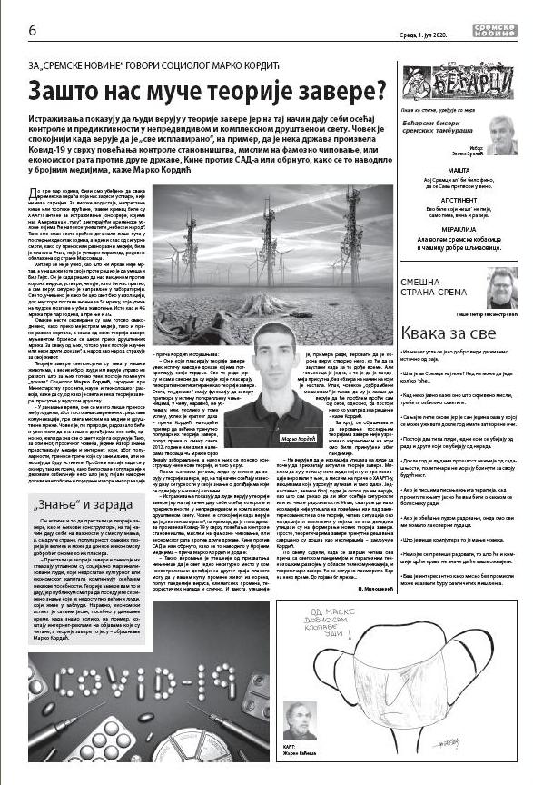 ZA „SREMSKE NOVINE“ GOVORI SOCIOLOG MARKO KORDIĆ