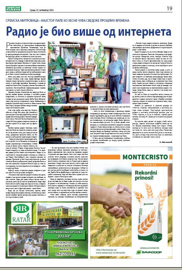 U novom broju „Sremskih novina“ i stranice posvećene sremskom sportu, mali oglasi, nedeljni horokop, omiljeni recept…