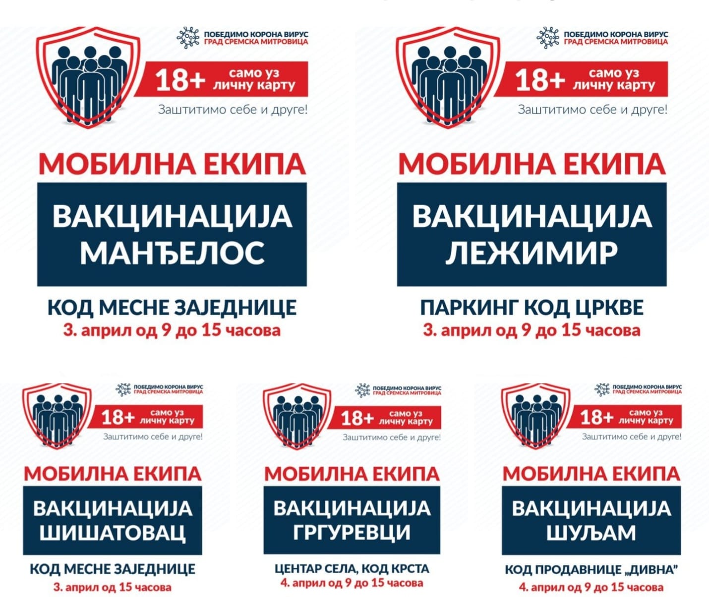Ovaj put, na redu su fruškogorska sela. Mobilni punktovi za imunizaciju će biti postavljeni u subotu 3.aprila u Manđelosu i Ležimiru, od 9 do 15 časova, u Šišatovcu posle 15 časova, a u nedelju 4.aprila u Grgurevacima i Šuljmu, od 9 do 15 časova.