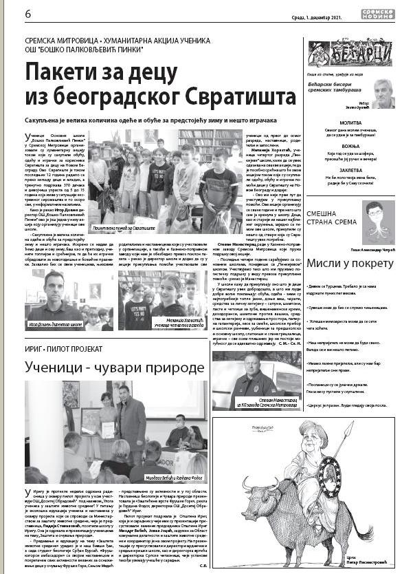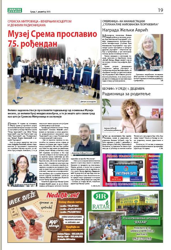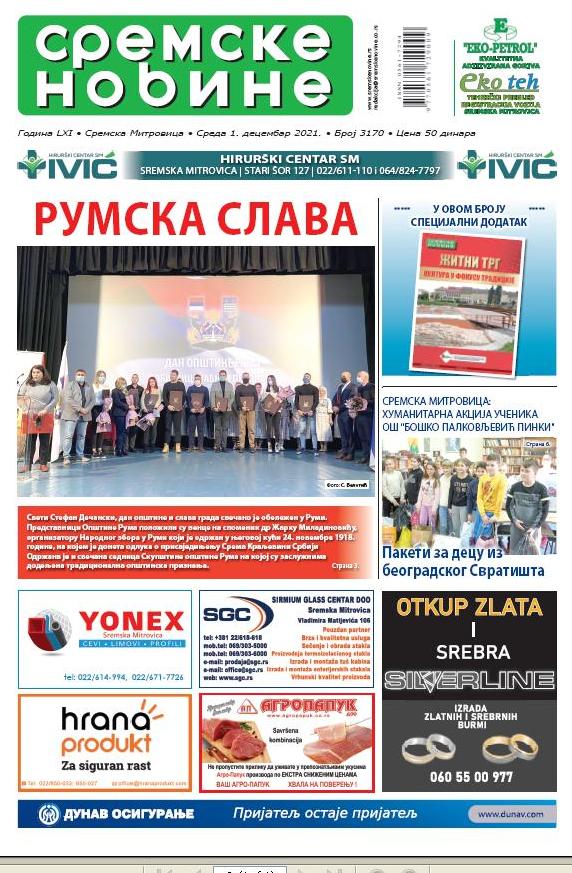 U novom broju „Sremskih novina“ i stranice posvećene sremskom sportu, mali oglasi, nedeljni horoskop, omiljeni recept…