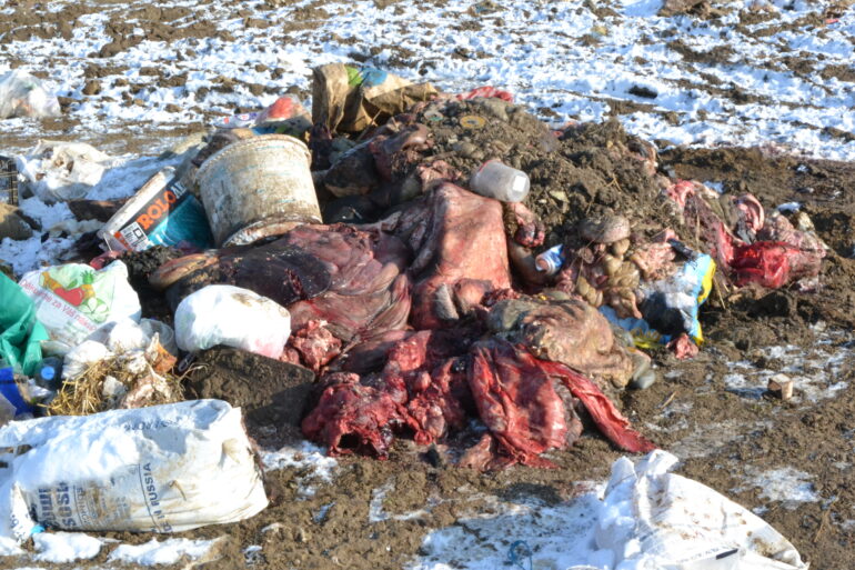Na ovom, novom đubrištu, isto kao i na starom. Bilo je svega, od igle do lokomotive. Dobro sad, lokomotive baš i ne, ali ampera, plastičnih gajbica, flaša i džakova (mahom pesticidnih) bilo je na pretek. A, ušuškana među džakovima, jer, napolju je temperatura već danima u minusu, ležala je i jedna svinja. Međutim, čini se da joj džakovi baš nisu pomogli, pa se, jadna, smrzla. Mada, pre će biti da ju je ovde neko doneo već unapred uginulu, jer, složićemo se, šta bi svinja radila na sred puta?