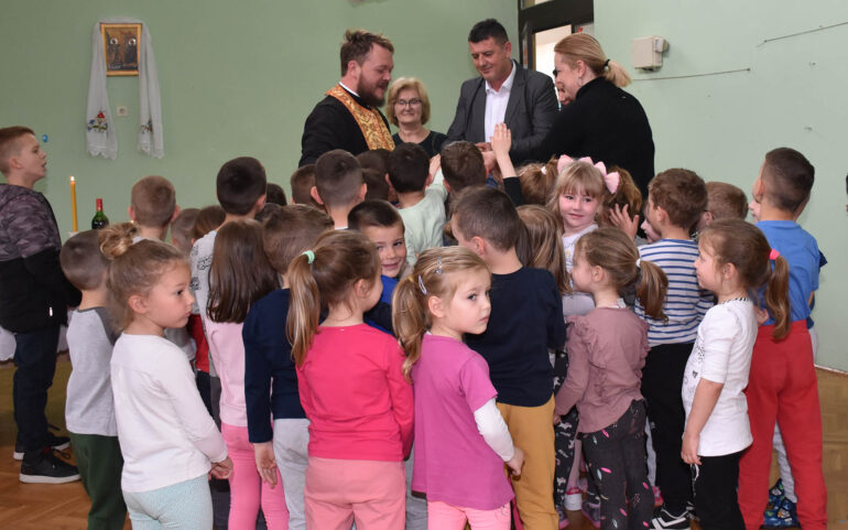 Кasnije tokom dana, u prisustvu zaposlenih, brojnih gostiju, članova Saveta mesne zajednice Šimanovci i predstavnika pećinačke lokalne samouprave, predsednik Đokić je prisustvovao i osveštanju novog vrtića u Šimanovcima.