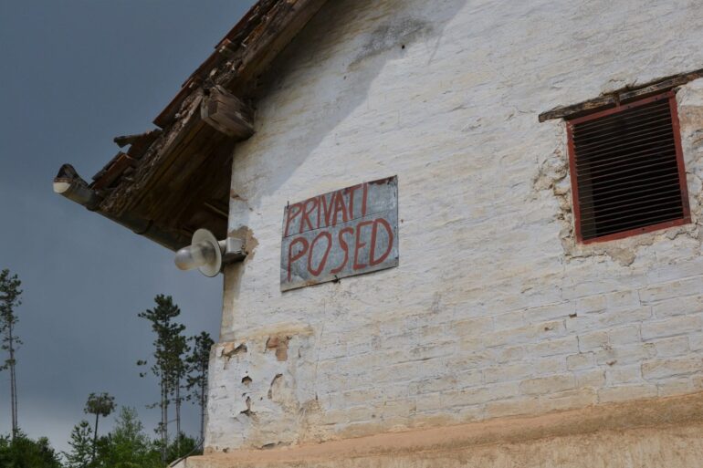 Prošavši onaj ukaljani put kraj Mutalja, pun kamenčića koji ispadaju iz kamiona koji vuku krečnjak, čvrsto rešeni da pronađemo bar jednog sagovornika, dovukosmo se i do puta na koji smo se zapravo i uputili. Sunce i oblaci se i dalje smenjuju, a lavirint između rupa na kolovozu vodi nas do ostataka nekadašnjeg Poljoprivrednog dobra “Pinki”. Ovo dobro više ne izgleda tako dobro kao nekad. A više nije ni narodno, kako se to govorilo. Na jednoj od građevina, na limenoj tabli, masnom farbom bilo je ispisano “PRIVATI POSED”. Od slova do slova. Zapitah se kako da ga pri`vatimo i, kako se posed uopšte može pri`vatiti. Ali ubrzo shvatismo da je novopečeni gazda izgleda samo progutao slovo.