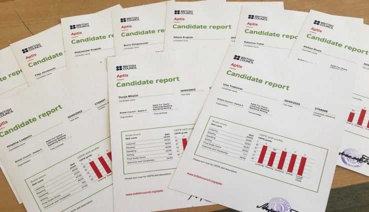 Britanski savet je ponudio testiranje učenika bilingvalnog odeljenja VIII4 koji žele da provere nivo znanja engleskog jezika kroz Aptis test za tinejdžere (Aptis for Teens). Preko onlajn platforme testirane su sve četiri jezičke veštine – čitanje, pisanje, slušanje i govor. Nakon višesatnog rada, rezultati su više nego odlični. Кod svih učenika procenjeno je da su veoma unapredili znanje jezika kroz nastavu matematike i geografije, kao i učešćem u mnogobrojnim projektima i vannastavnim aktivnostima.