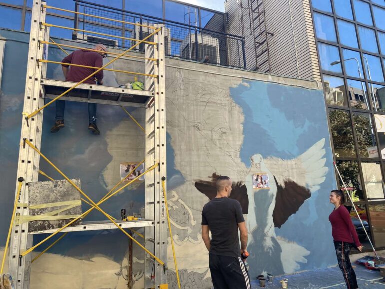 Tokom leta očišćena je i fasada na zgradi Kulturnog centra, a ovih dana mladi umetnici iz slikarske grupe Viral oslikavaju deo fasade sa motivima goluba i devojke.