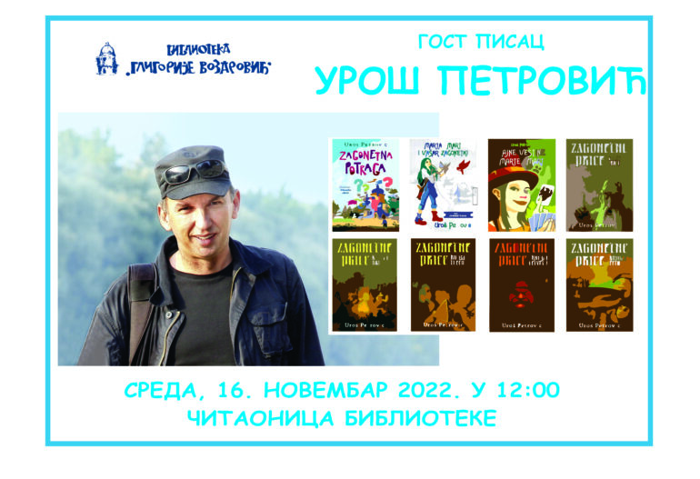 Druženje sa piscem, Urošem Petrovićem zakazano je za sredu, 16. novembar sa početkom u 12:00 časova.
