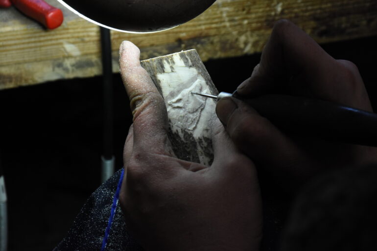 -Sve se radi sa malim mašinicima, koje podsećaju na one u zubarskoj ordinaciji. Gravure se uglavnom rade iz glave. Na materijalu može samo forma da se nacrta, dok svaki zub i detalje izrađuješ na osnovu misli koje imaš u glavi. Lično, povezao sam to sa skulpturama koje sam radio na drvetu i preneo na noževe, takoreći, minijature – kaže naš sagovornik.