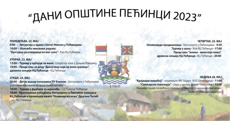Dan opštine Pećinci 22. maj, Sveti Nikola letnji, i ove godine će biti obeležen čitavim nizom kulturnih i sportskih manifestacija od 22. do 28. maja, pod pokroviteljstvom pećinačke lokalne samouprave.