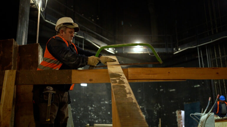 I dalje se pretežno radi na uklanjanju prethodnog stanja, proveravaju se tavan i krov, a spoljni zidovi u atrijumu Srpskog doma su spremni za novu fasadu.