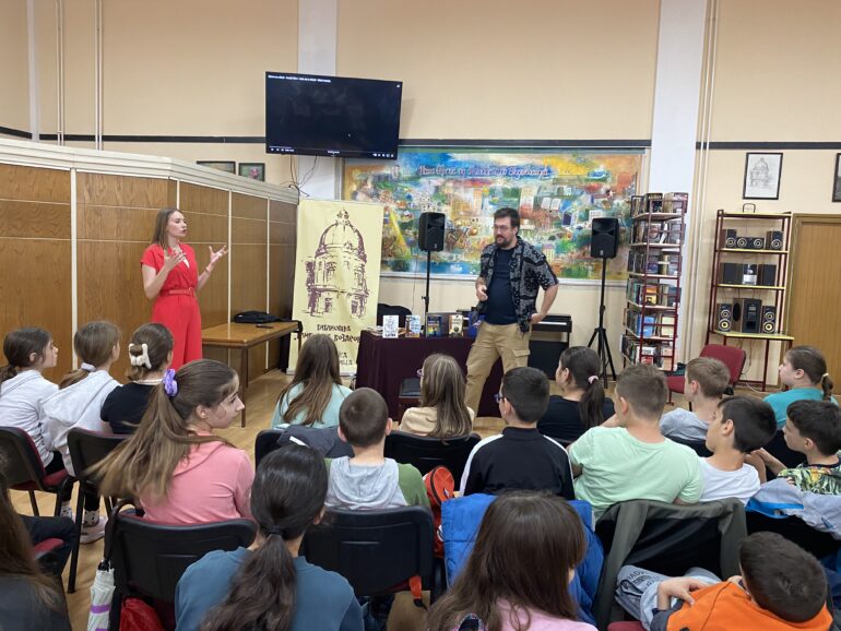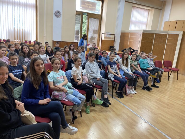 U publici su bili učenici OŠ „Slobodan Bajić Paja“, OŠ „Boško Palkovljević Pinki“ i OŠ „Jovan Jovanović Zmaj“. Stefan je deci predstavio neke od svojih poznatih naslova.