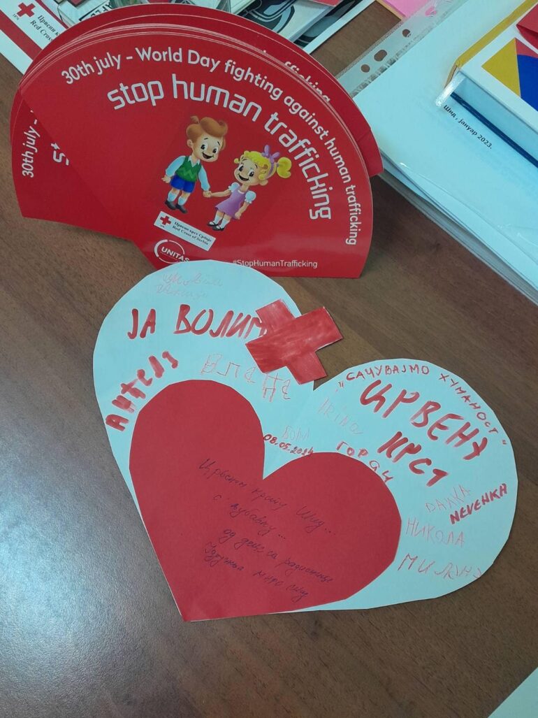 -Pričali smo o humanosti, solidarnosti i zaključili da treba da poštujemo svakog čoveka i jedni drugima budemo podrška. Deo radionice posvetili smo programu “Prevencije trgovine ljudima” i kroz likove Mišu i Mašu podsetili se na koji način treba da se čuvamo ove opasnosti. Za naš dan od drugara smo dobili papirno srce kao znak zahvalnosti za podršku koju jedni drugima nesebično pružamo – rekli su u Crvenom krstu Šid.