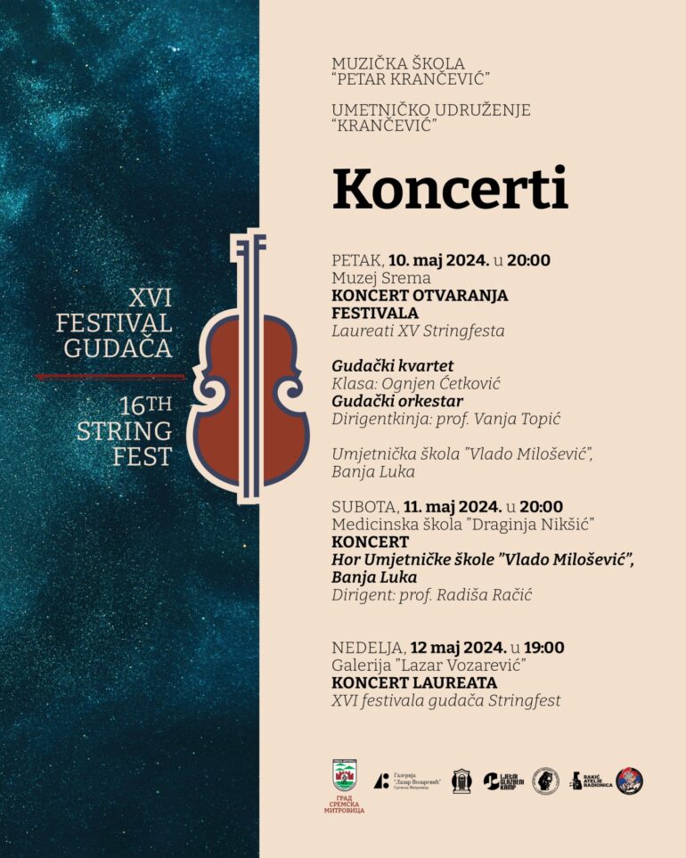 XVI Međunarodni festival gudača – Stringfest će se održati od 10. do 12. maja 2024. godine u organizaciji i realizaciji Muzičke škole „Petar Кrančević“ i Umetničkog udruženja Кrančević. Festival gudača ima izuzetan značaj, s obzirom na to da predstavlja podršku mladima u razvoju svojih talenata, te da znatno doprinosi uključivanju mladih u umetnički i kultutni život.