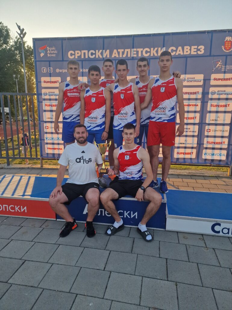 Ekipu su činili Filip Kovačević 60m, Vuk Došen 800m, Relja Miletić 60m prepone, Teodor Stojković skok u dalj, Ognjen Tubić skok u vis, Mojsin Dejan bacanje vortexa, Andrej Lukić bacanje kugle. Nakon navedenih disciplina dečaci su se nalazili na četvrtom mestu, pred start štafete.
