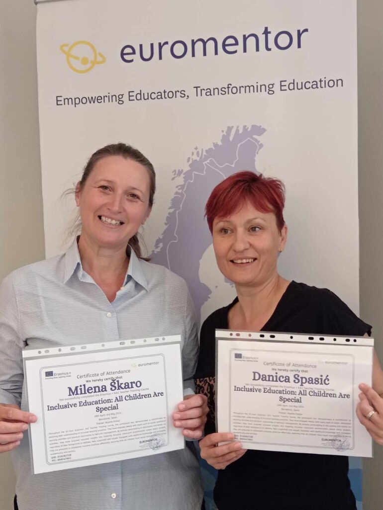 -Obuka “Inkluzivno obrazovanje- Sva deca su posebna” u Barseloni donela nam je nova znanja vezana za autističnu decu, decu sa Daunovim sindromom i ADHD. Način na koji treba da se pristupi detetu, način reagovanja, uključivanja, prilagođavanja, tehnike kako sačuvati dete od povrede i metode u radu sa decom sa posebnim potrebama.  Nastavnici iz drugih država Evrope koji su bili prisutni na seminaru susreću se sve više sa decom sa posebnim potrebama u nastavničkoj praksi, ali obavezno imaju u učionici nastavnika koji lično radi sa detetom (Supportive teacher) i nastavnika koji se bavi administracijom. Kod nas je to sve na jednom nastavniku, rekla je Milena Tomić Škaro, nastavnica sa 23 godine staza.