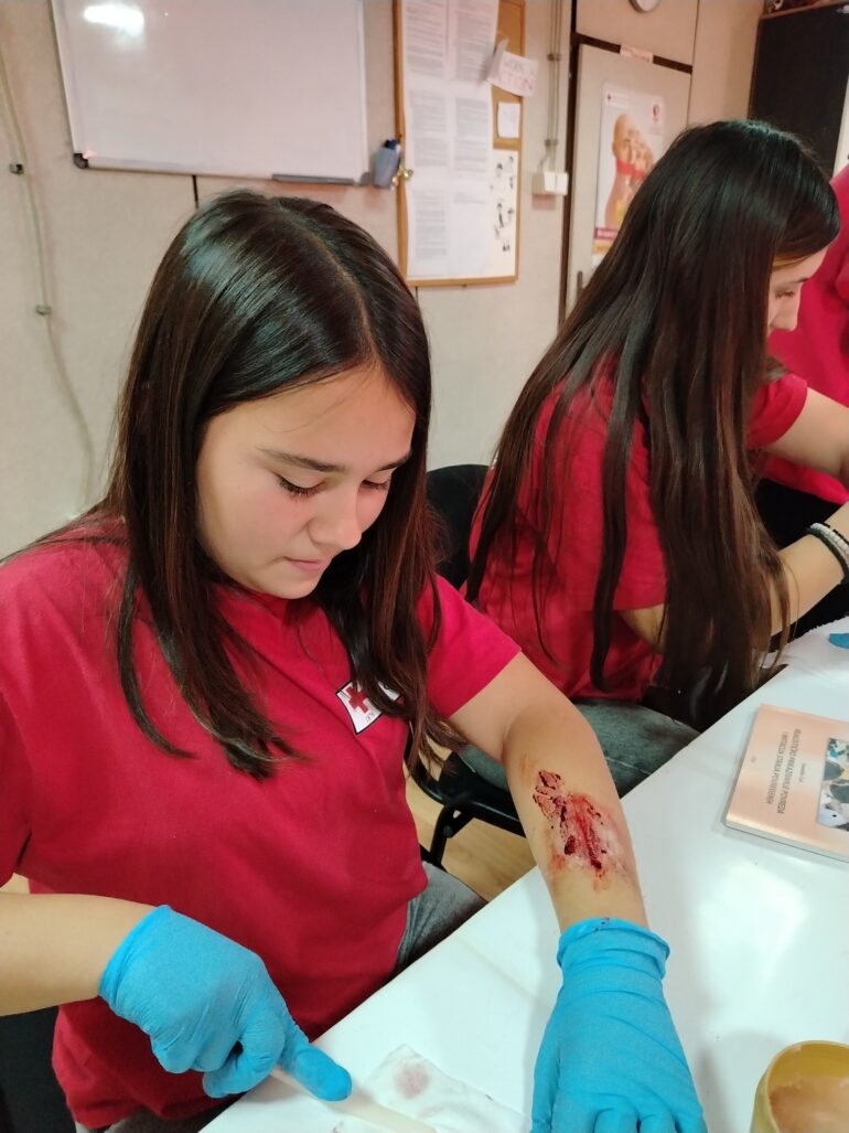 U prostorijama Crvenog krsta Sremska Mitrovica realizovana je obuka u realističkom prikazu povreda, stanja i oboljenja. Obuci je prisustvovalo 14 novih volontera Crvenog krsta Sremska Mitrovica, među kojima su bili i predstavnici Crvenog krsta Bogatić .