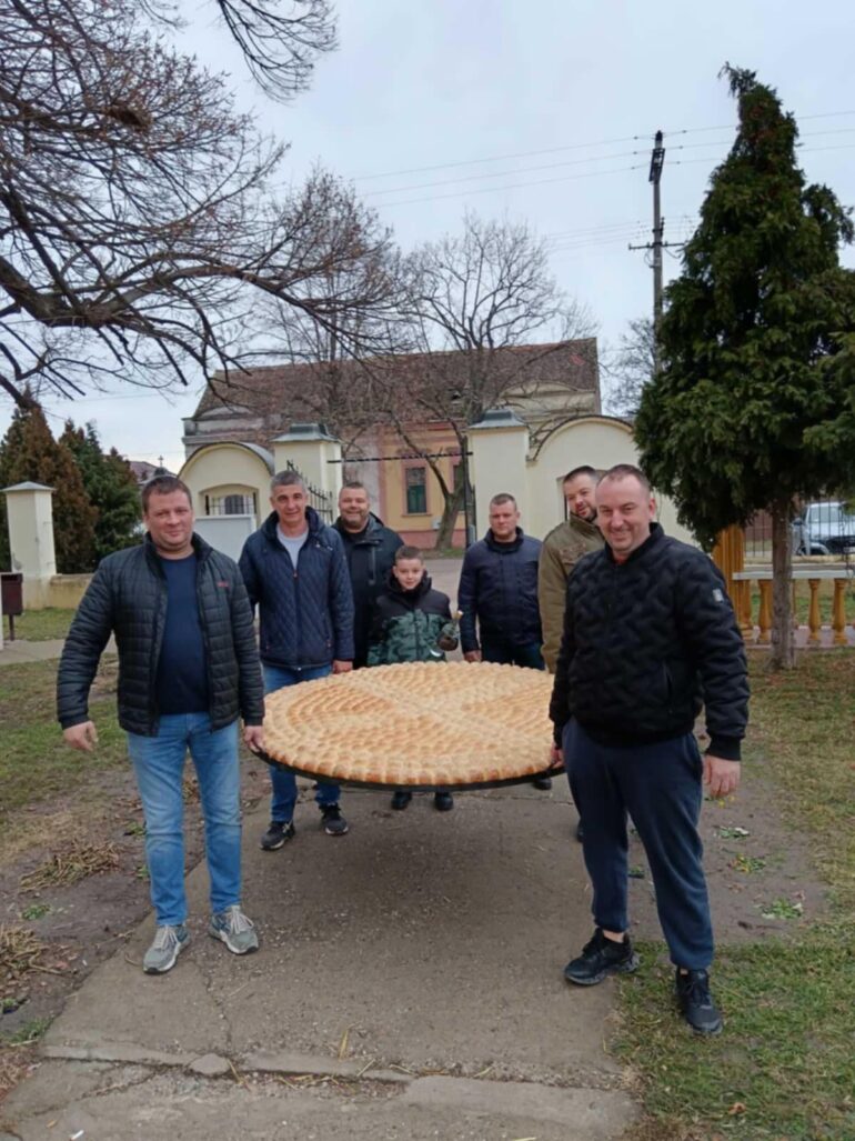 Na Svetoj liturgiji, kojoj je prisustvovao veliki broj Laćaraca, tradicionalno je lomljena česnica sa dukatom.