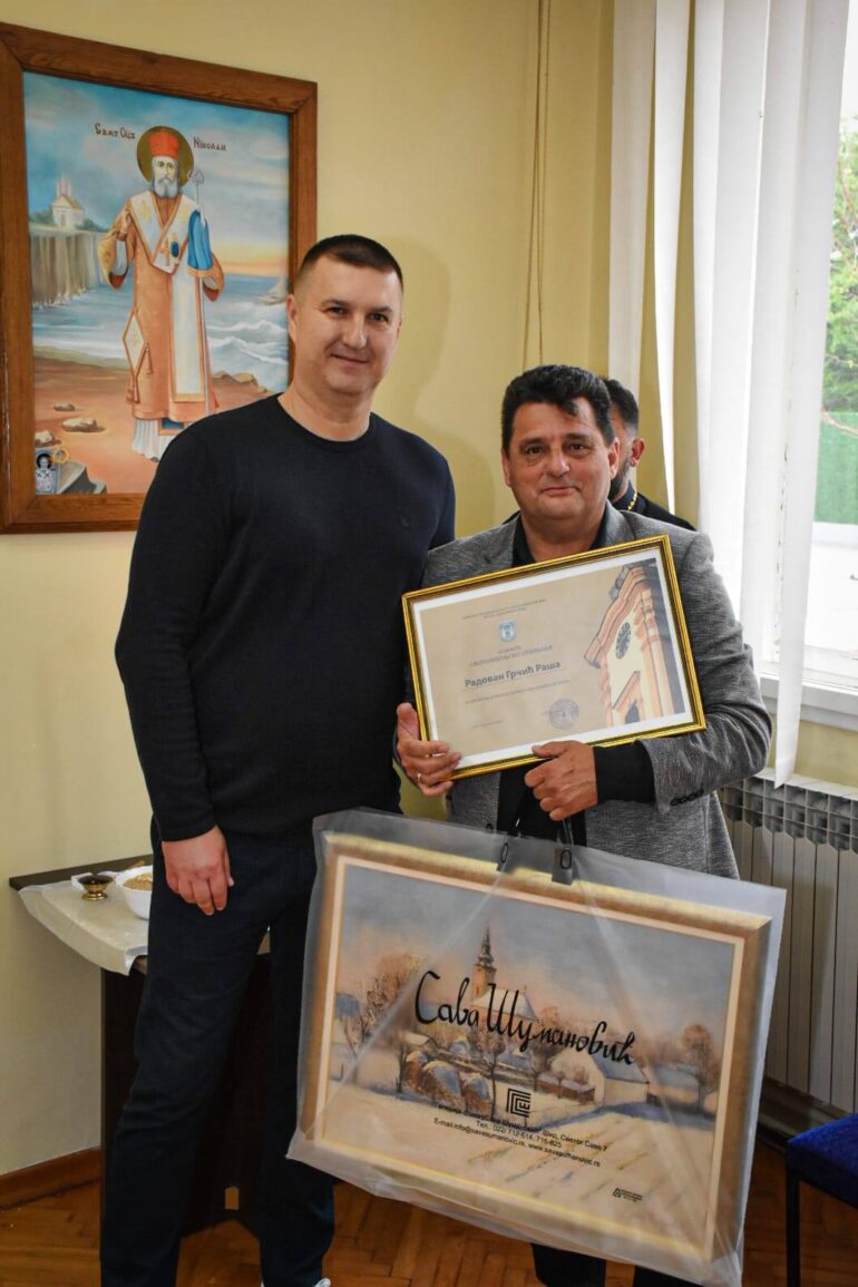 U prostorijama MZ Šid osveštan je slavski kolač i dodeljena tradicionalna Svetonikoljska priznanja zaslužnim pojedincima i kolektivima koji svojim radom i zalaganjem doprinose afirmaciji grada. Priznanje je uručio poverenik MZ Šid, Goran Grahovac, a ovogodišnji laureat je Radovan Grčić Raša, umetnički rukovodilac SKUD-a „Sveti Sava“.