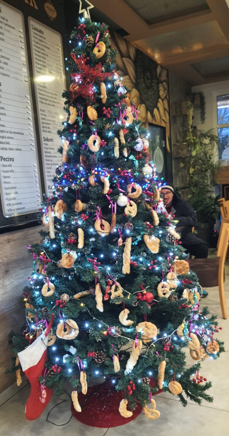 Jedinstvena jelka može se videti u jednoj pekari. Osim standardnih kuglica i lampica nju ukrašavaju raznovrsna peciva – perece, pletenice, kiflice, đevreci i slično.
