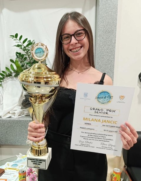 -Jesenas sam na takmičenju „Island of Stars“ na Kipru bila laureat svoje kategorije i to mi je najznačajnija nagrada. Iako sam jedva dobila termin za probu i iako sam svirala klasičan repertoar, bila sam laureat takmičenja u svojoj kategoriji i osvojila čak i novčanu nagradu. Znala sam da ću dobro proći, ali takav uspeh nisam očekivala, jer sam svirala klasičnu sonatu i sporiji nokturno. Najteže je svirati klasičan program, sve što je atraktivno može da se pokrije pedalom, a kod klasike mora da se svira savršeno. Ja jesam sjajno svirala i sve odradila besprekorno, u odnosu na ostale koji su imali bombastičan program. Uz to moram reći da je konkurencija tamo bila izuzetna – govori osamnaestogodišnja Milana Jančić.